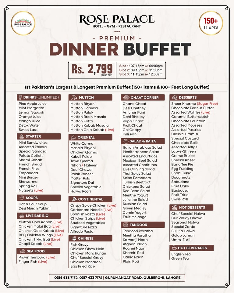 Experience the Ultimate Dinner Buffet at Rose Palace Restaurant in Gulberg